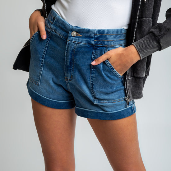 The Cuffed Short in Medium Indigo blends casual style with everyday comfort, designed for relaxed days and active outings alike. It offers a polished look with a stretch-friendly fabric blend.