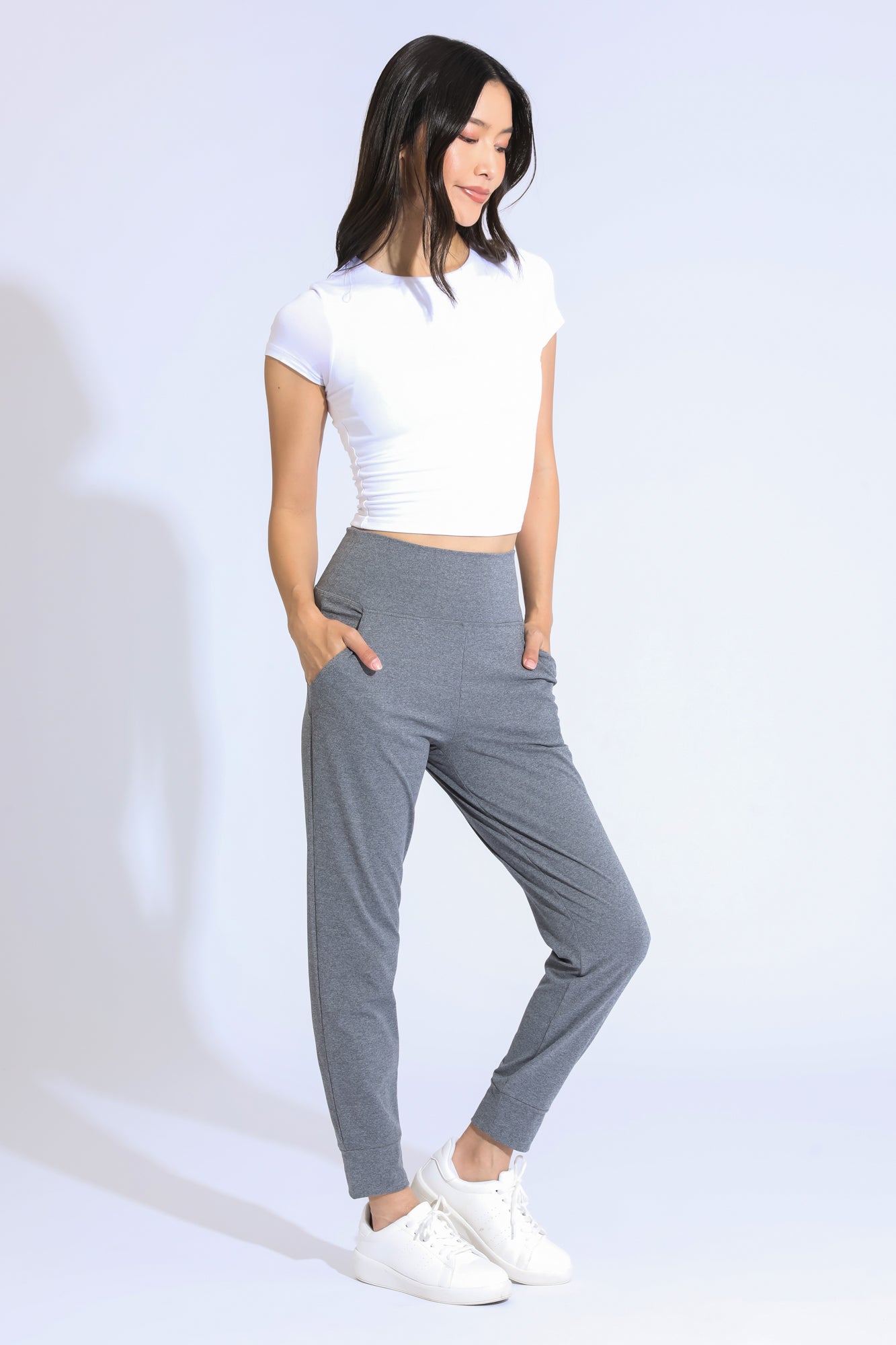 The EASY KNIT JOGGER in Heather Charcoal is the perfect blend of style, comfort, and functionality. Designed to provide a flattering slim fit, these joggers accentuate your curves while ensuring you look your best whether you're at home, hitting the gym, or running errands.
