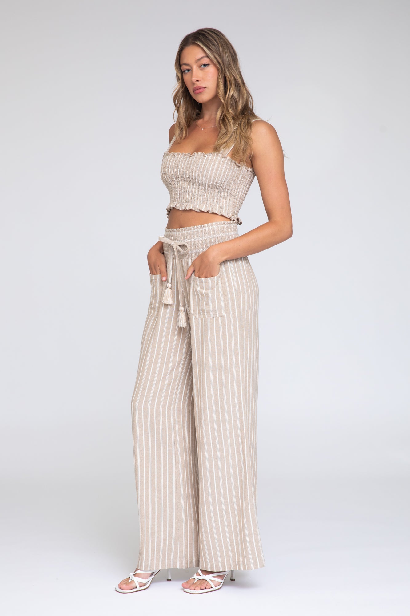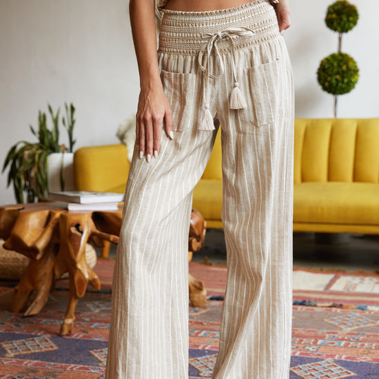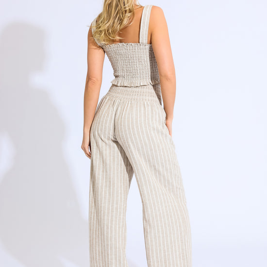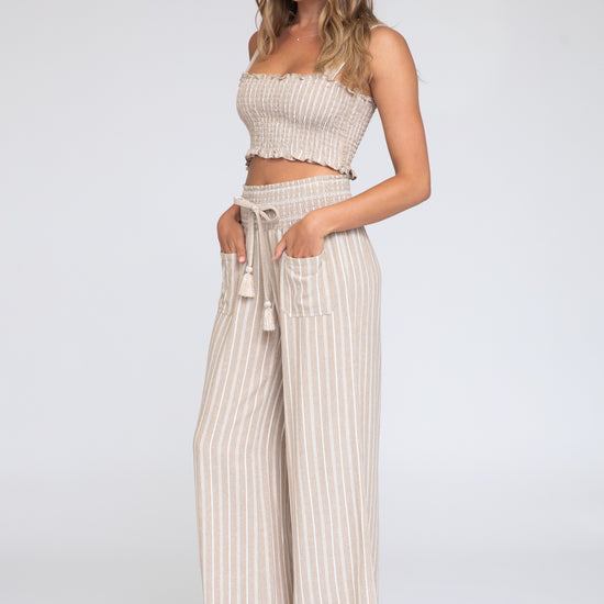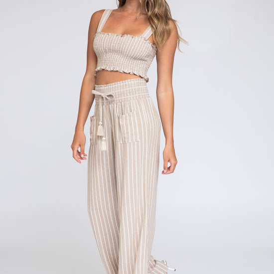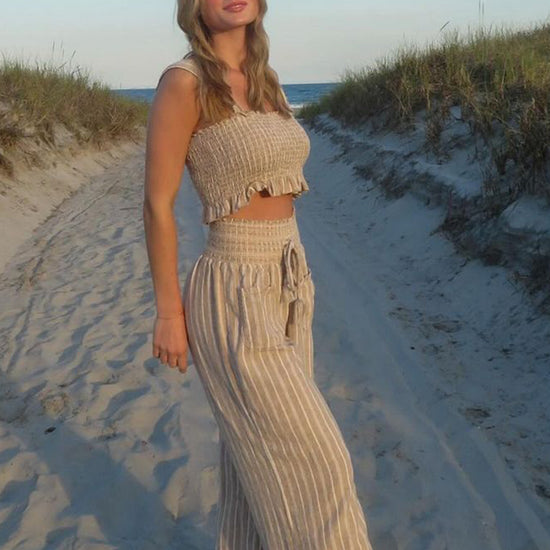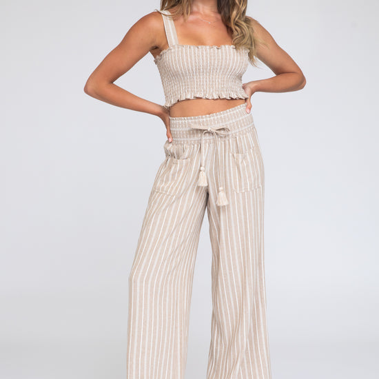 Smocked Top and Boardwalk Pant Linen Set - Khaki