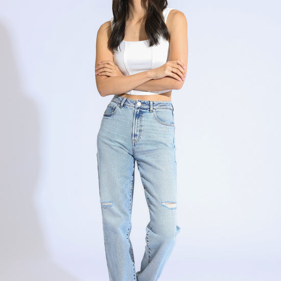 Introducing the STELLA HIGH RISE 90'S STRAIGHT JEANS in a chic Light Indigo wash. These jeans combine a vintage-inspired design with modern comfort, making them a must-have addition to your wardrobe. Crafted for versatility, they effortlessly elevate any outfit.