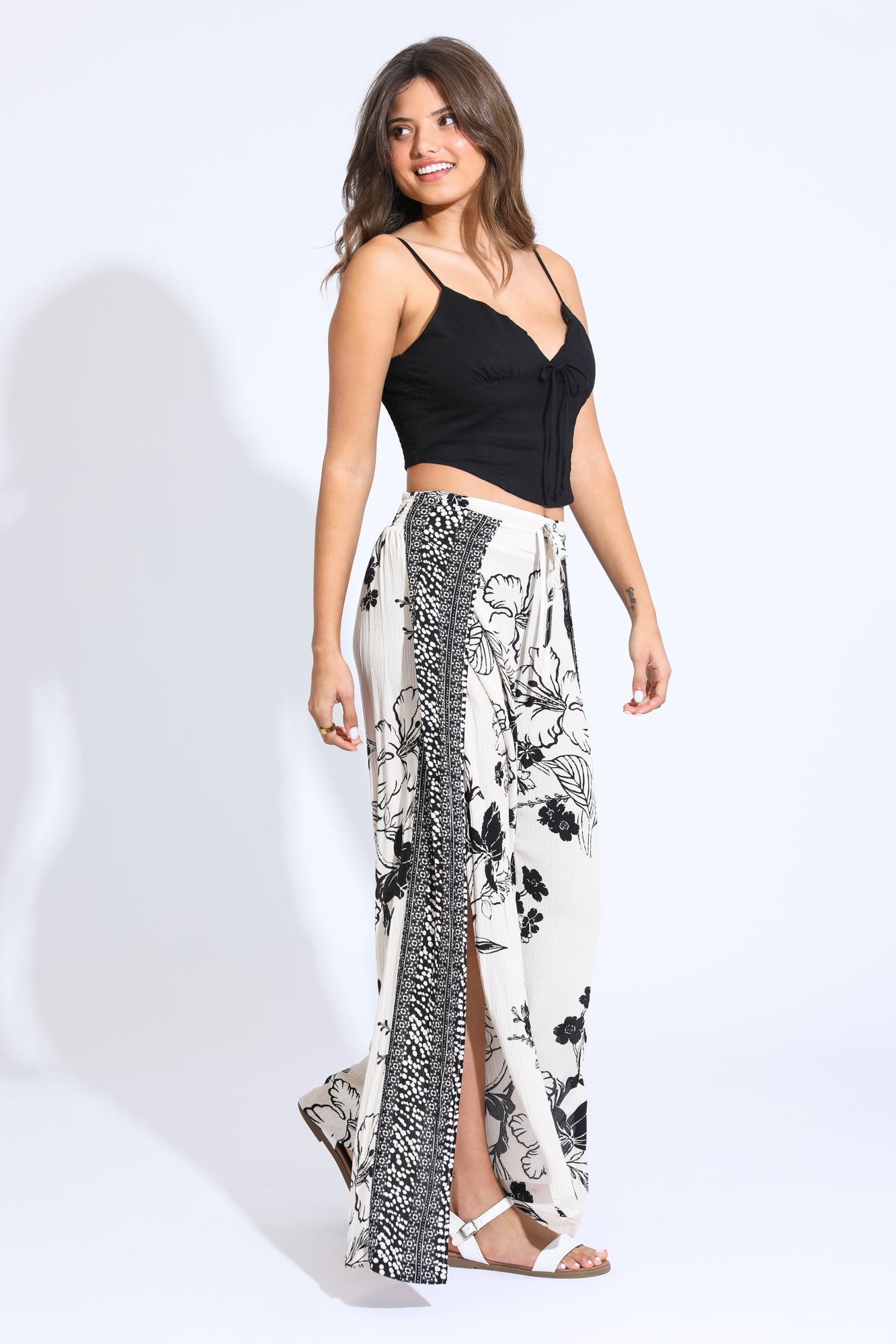WIDE LEG BORDER WRAP PANT - WHITE FLORAL