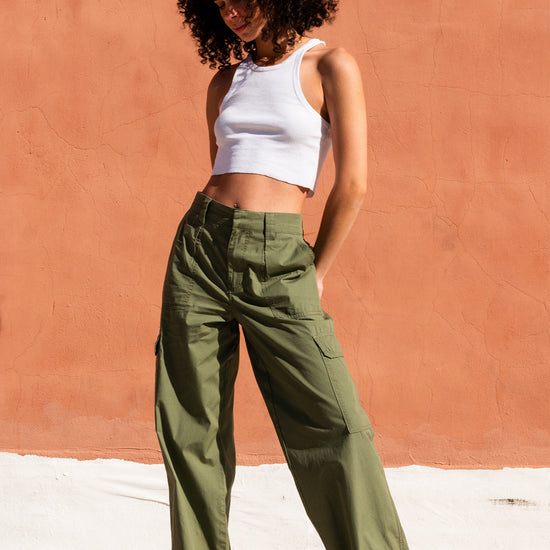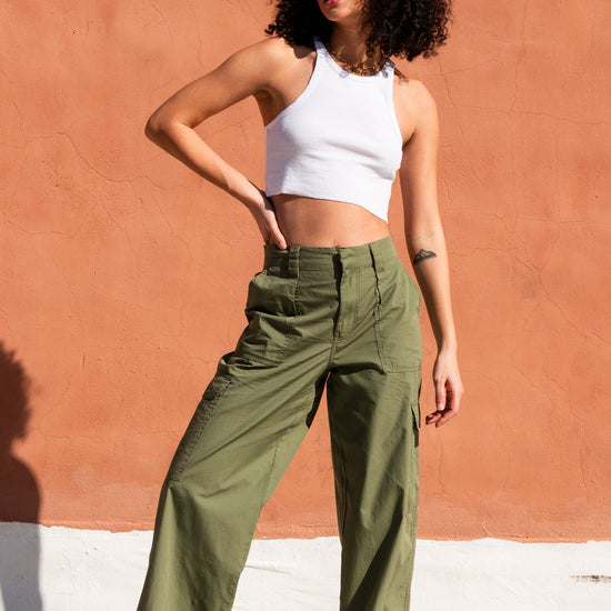 Introducing the WIDE LEG CARGO PANT in an elegant olive hue, designed for both comfort and style. Perfectly blending a relaxed silhouette with practical elements, these cargo pants are a must-have addition to your wardrobe.