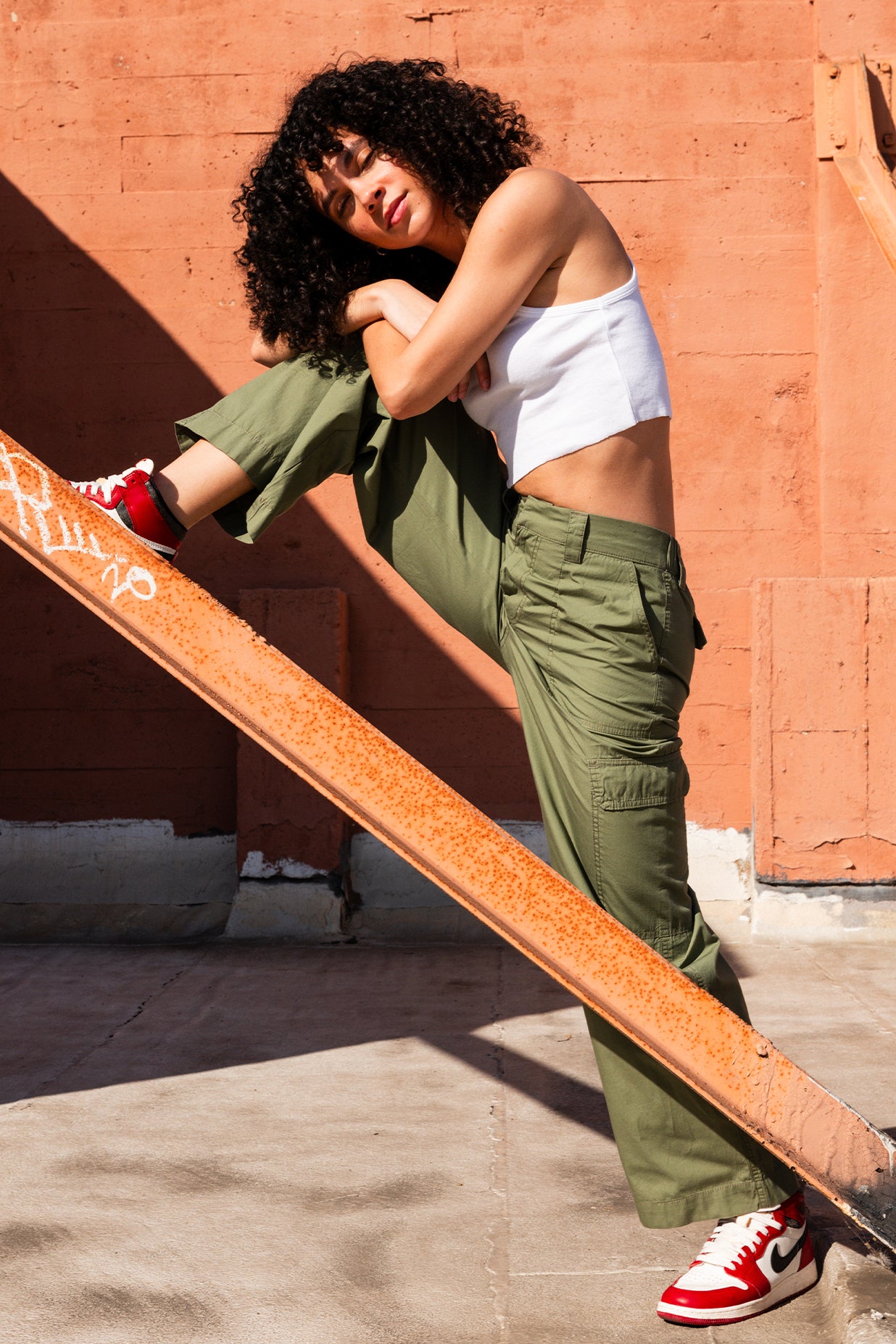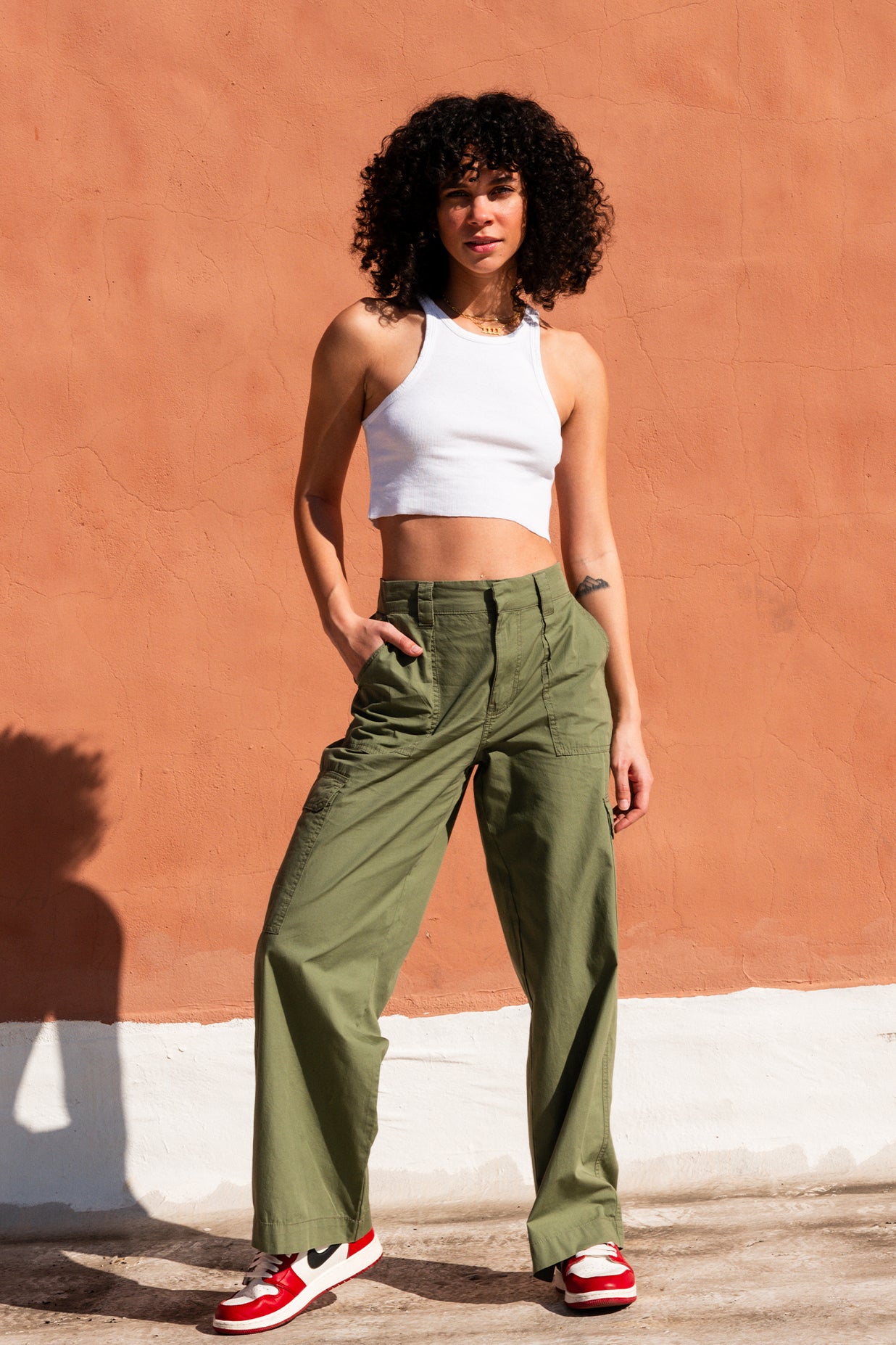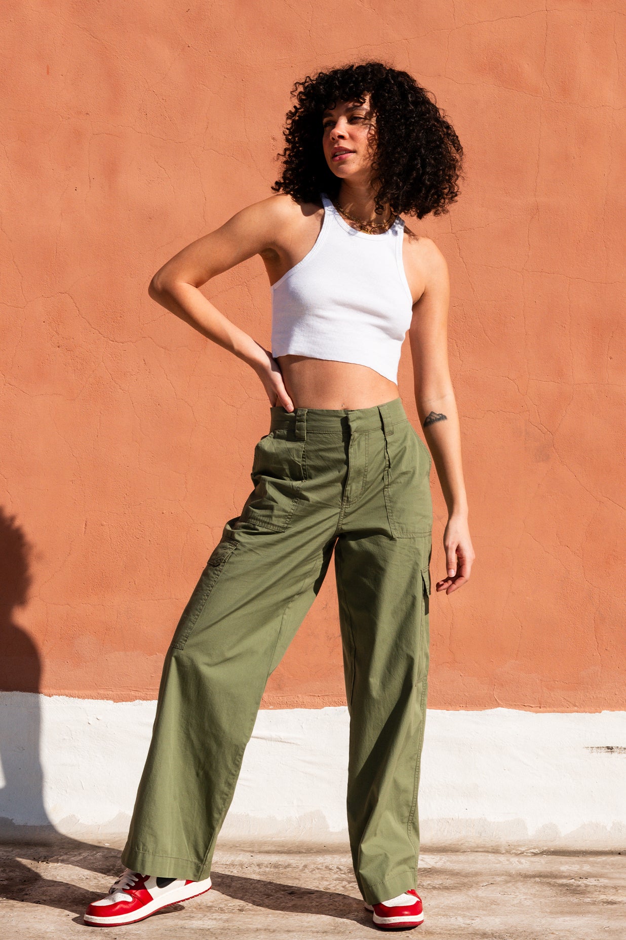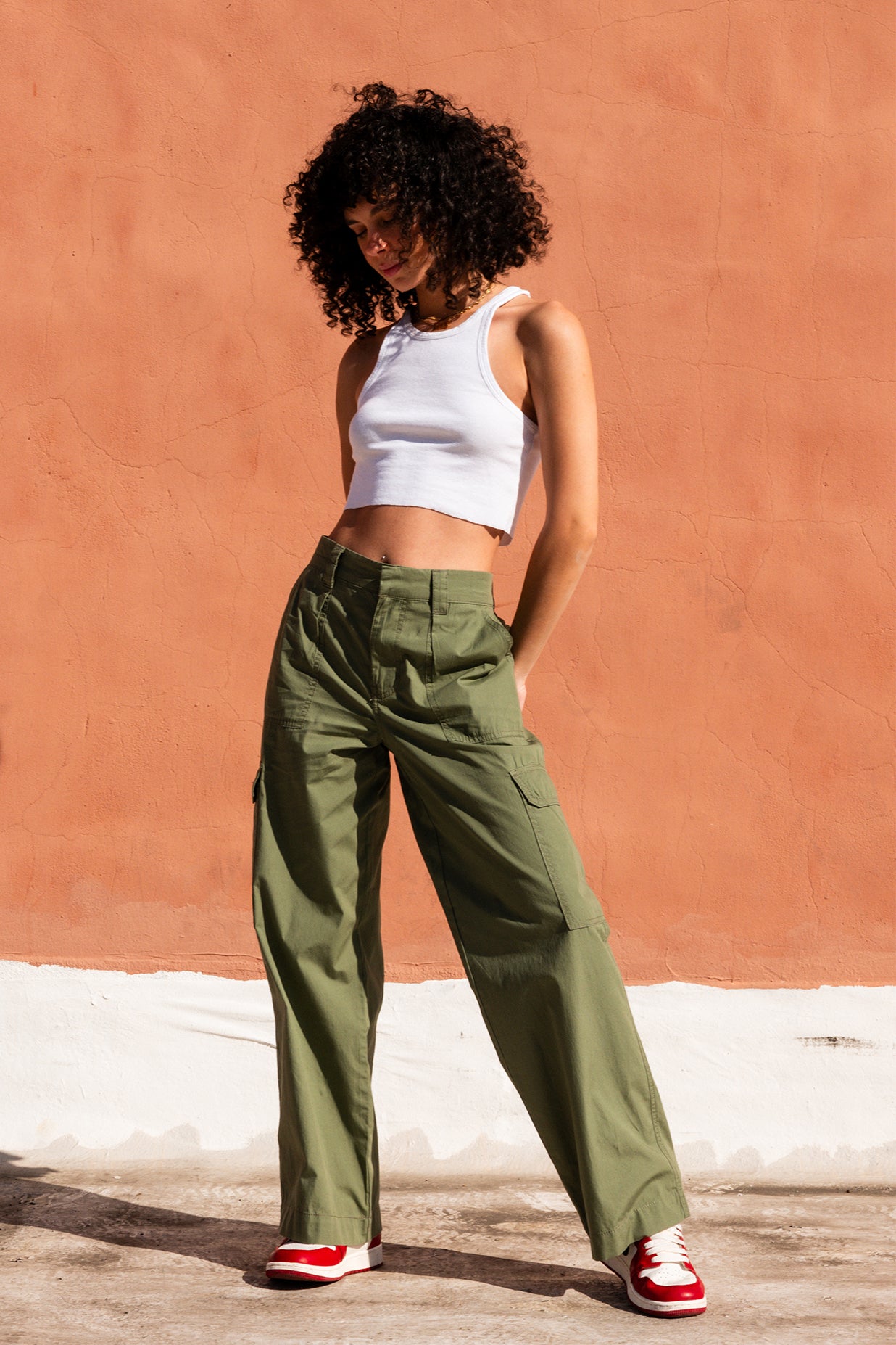 Introducing the WIDE LEG CARGO PANT in an elegant olive hue, designed for both comfort and style. Perfectly blending a relaxed silhouette with practical elements, these cargo pants are a must-have addition to your wardrobe.