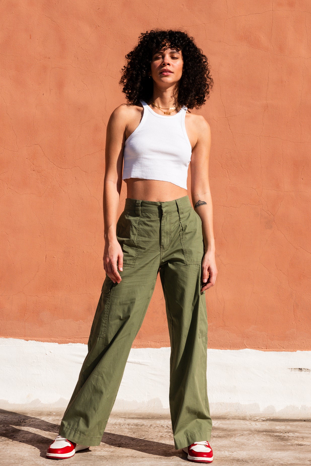 Choose the WIDE LEG CARGO PANT - OLIVE for its perfect balance of style and practicality. With its true-to-size fit and timeless design, these pants are versatile enough for casual outings or dressed-up events, making them a smart choice for any fashion-forward individual.