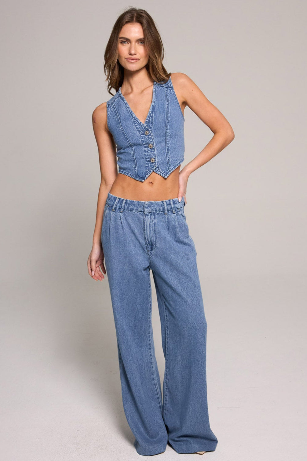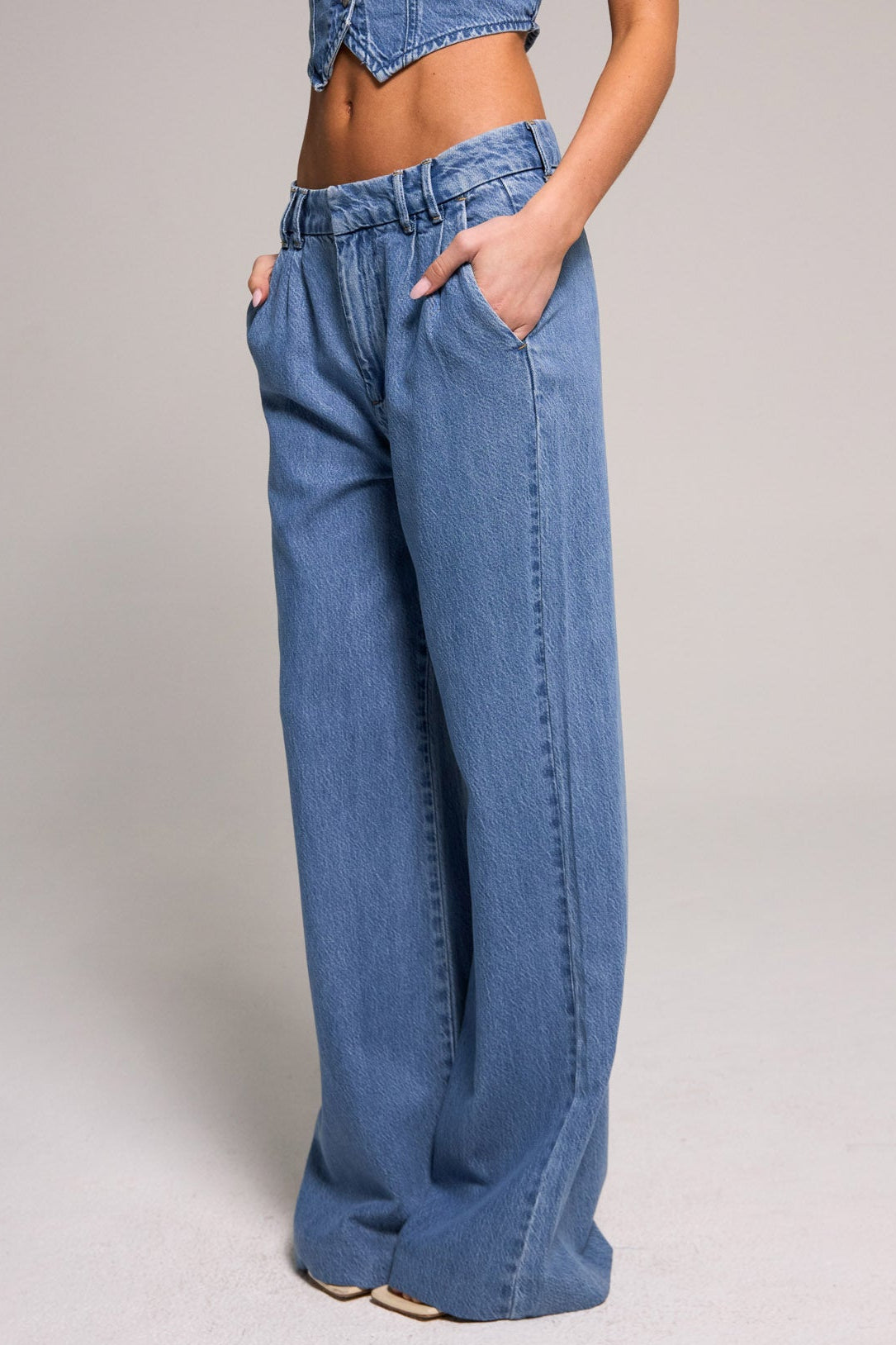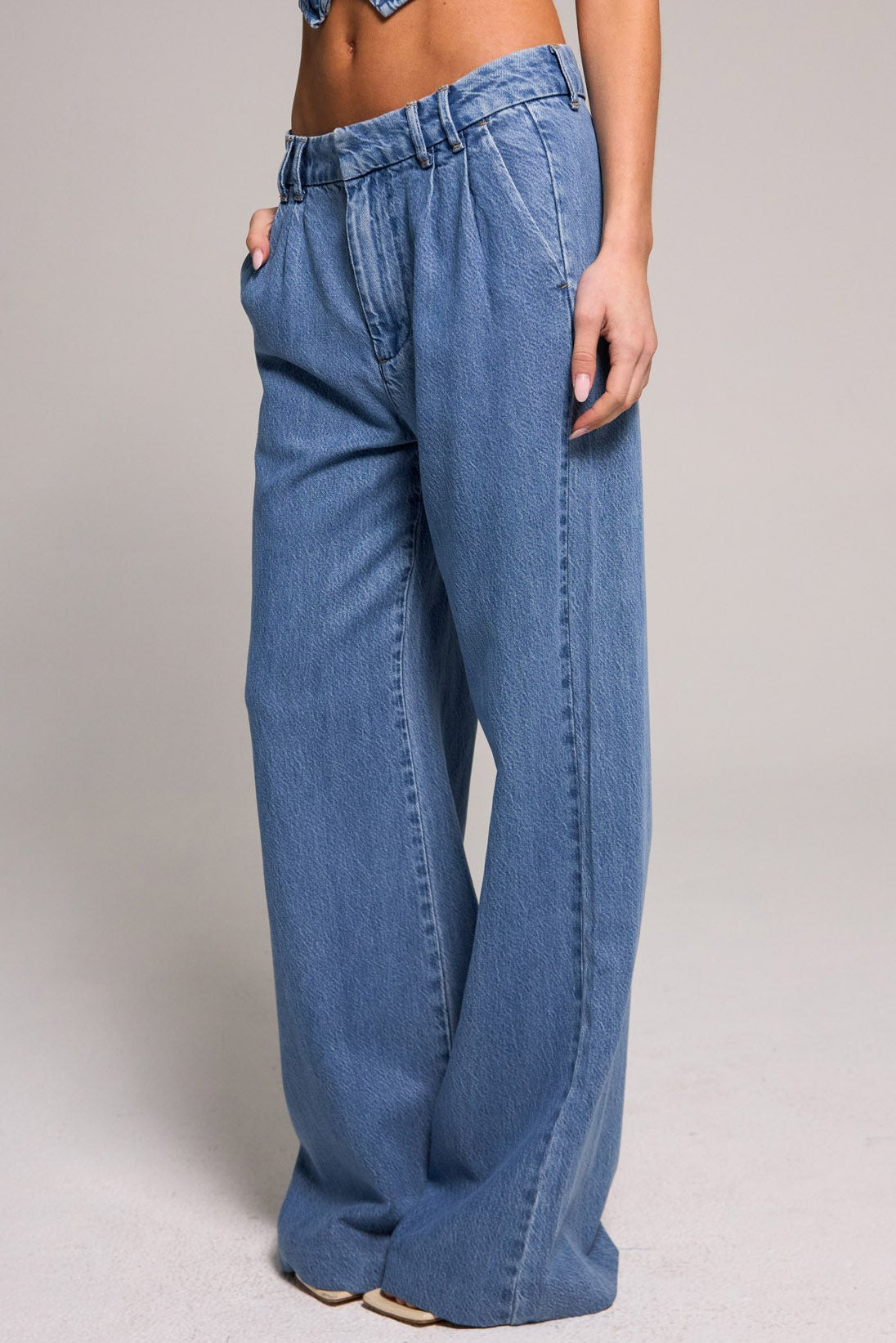 Introducing the Wide Leg Trouser Jeans - Medium Blue, the perfect combination of style and comfort. These jeans offer a soft, breathable feel that is perfect for all-day wear. With a 32-inch inseam, they provide an ideal fit for both casual and dressy occasions.